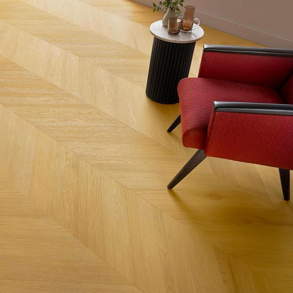 Kompozitná vodoodolná podlaha so štruktúrou dreva. Vzor podlahy “chevron” je elegantný a nadčasový. Tento prestížny vzor vytvára z jednotlivých lamiel materiálu kontinuálny vzor “V”. Je inšpirovaný tradičnými palácovými podlahami a prináša do vášho domova príjemný, nevtieravý a estetický prvok.