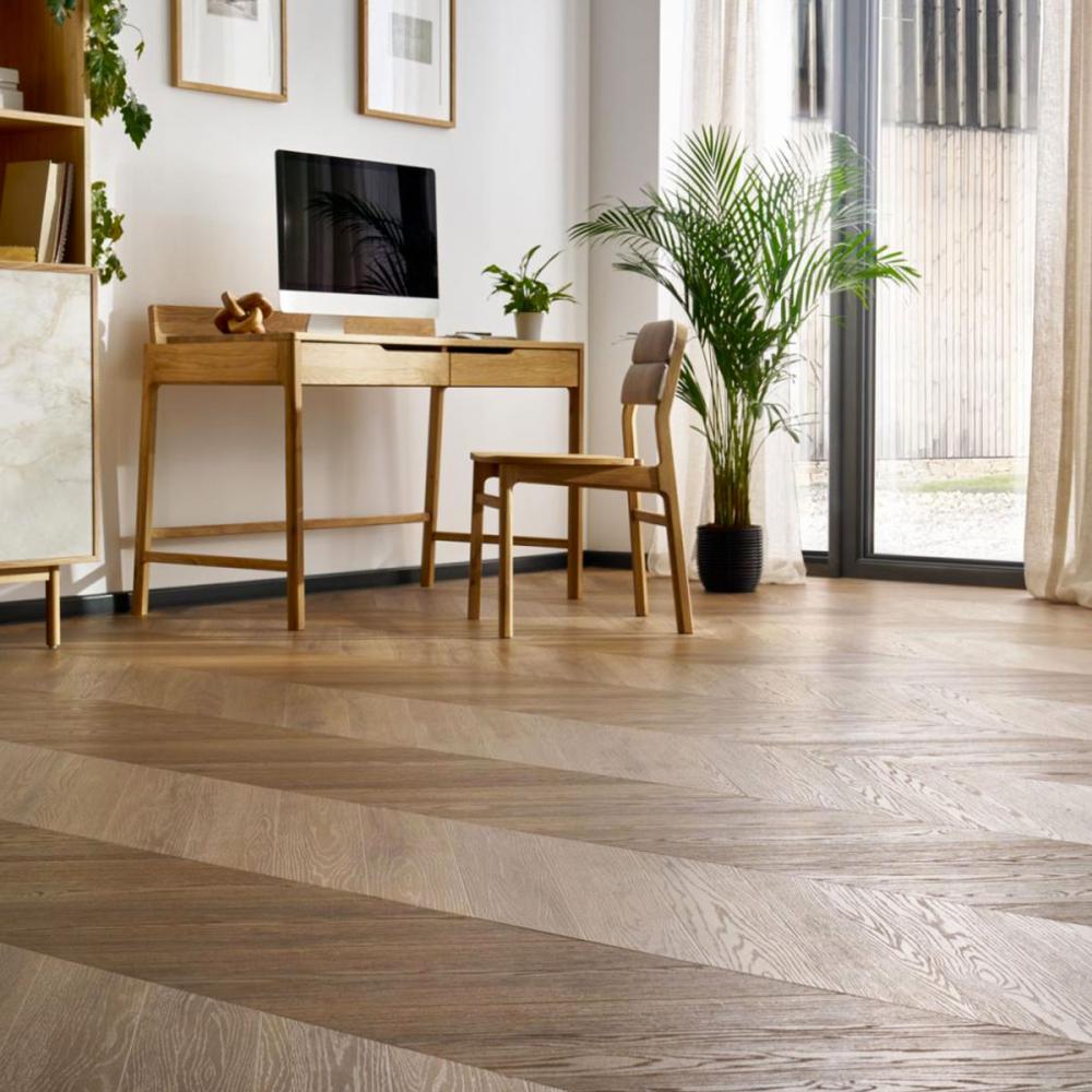 Kompozitná vodoodolná podlaha so štruktúrou dreva. Vzor podlahy “chevron” je elegantný a nadčasový. Tento prestížny vzor vytvára z jednotlivých lamiel materiálu kontinuálny vzor “V”. Je inšpirovaný tradičnými palácovými podlahami a prináša do vášho domova príjemný, nevtieravý a estetický prvok.