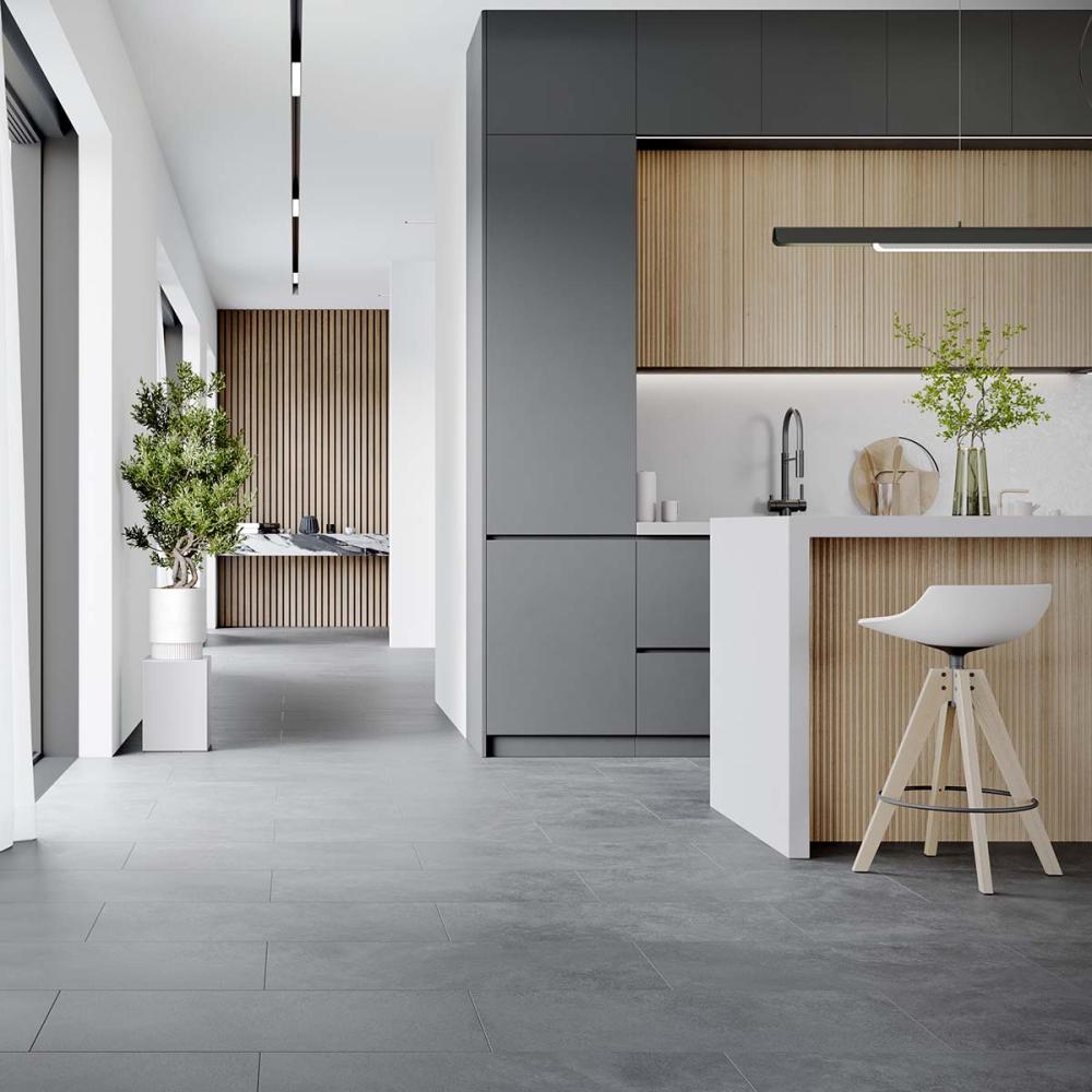 Kompozitná vodoodolná podlaha bez obsahu ftalátov a PVC s integrovanou podložkou.