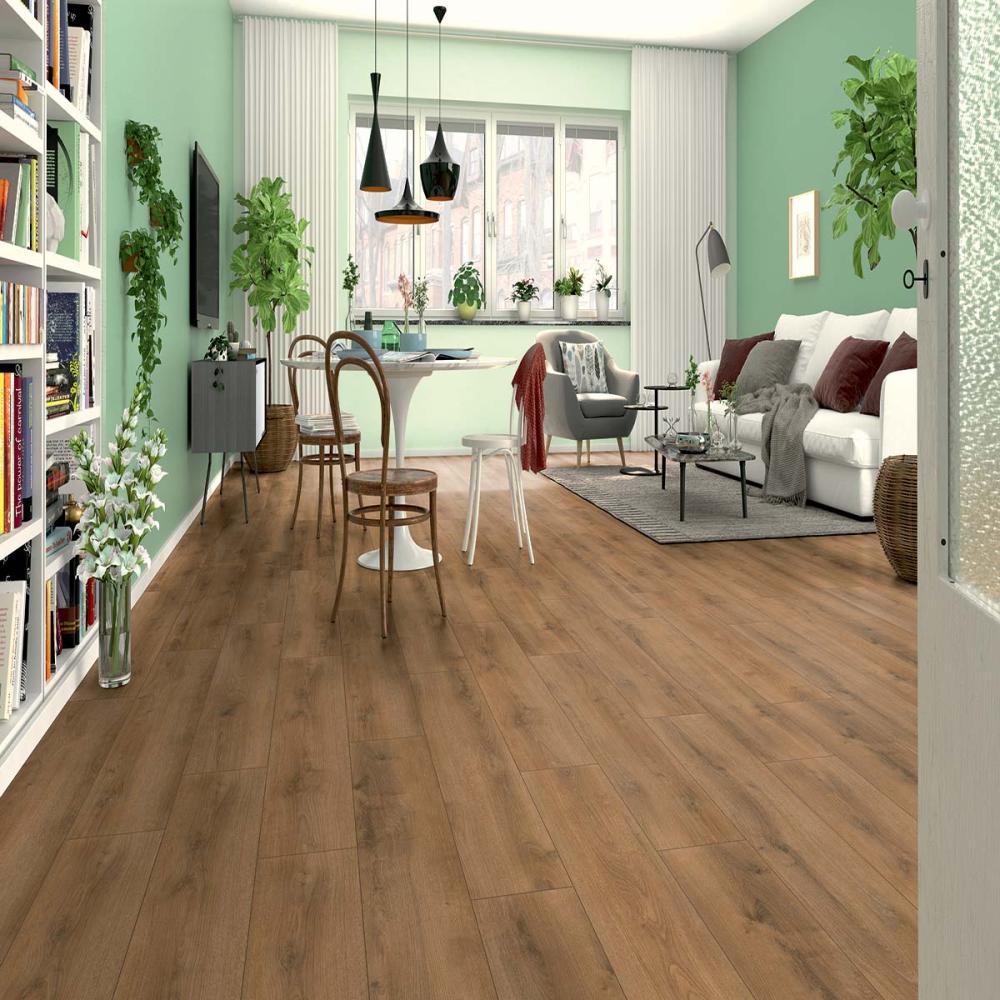 Laminátová podlaha s hrúbkou 8mm , oderuvzdornej triedy AC4/32 s V drážkou po celom obvode lamely a systémom spoja click, čo umožňuje jednoduchú inštaláciu aj domácim kutilom. Laminatová podlaha vhodná do domácnosti a vzhľadom na vysokokvalitnú laminátovú podlahu, môže byť namontovaná hocikde. Laminátová podlaha sa často používa v komerčných priestoroch vrátane hotelov, reštaurácií, kancelárií a obchodov.