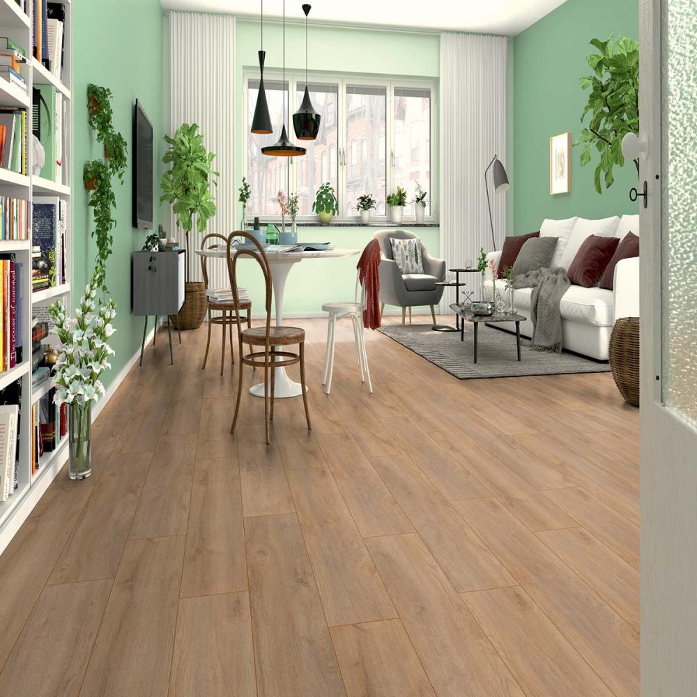 Laminátová podlaha s hrúbkou 8mm , oderuvzdornej triedy AC4/32 s V drážkou po celom obvode lamely a systémom spoja click, čo umožňuje jednoduchú inštaláciu aj domácim kutilom. Laminatová podlaha vhodná do domácnosti a vzhľadom na vysokokvalitnú laminátovú podlahu, môže byť namontovaná hocikde. Laminátová podlaha sa často používa v komerčných priestoroch vrátane hotelov, reštaurácií, kancelárií a obchodov.