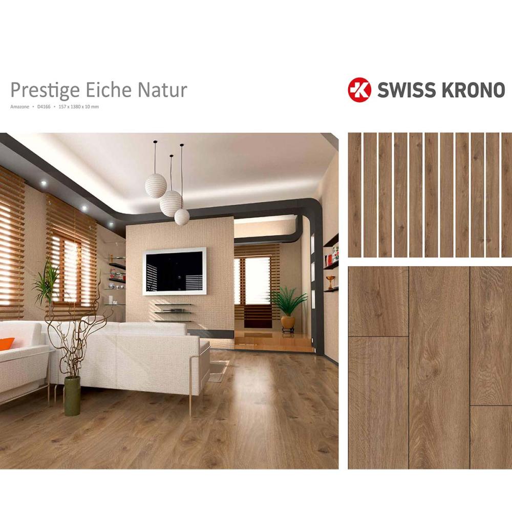Laminátová podlaha s hrúbkou 10mm , oderuvzdornej triedy AC5/33 s V drážkou po celom obvode lamely a systémom spoja click, čo umožňuje jednoduchú inštaláciu aj domácim kutilom. Laminatová podlaha vhodná do domácnosti a vzhľadom na vysokokvalitnú laminátovú podlahu, môže byť namontovaná hocikde. Laminátová podlaha sa často používa v komerčných priestoroch, v rátane hotelov, reštaurácii, kanceláriách a obchodoch.