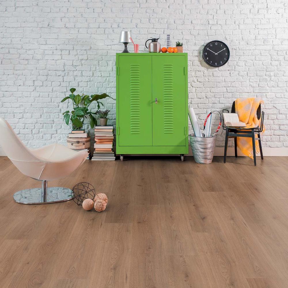Laminátová podlaha s hrúbkou 8mm , oderuvzdornej triedy AC4/32 bez V drážky a systému spoja click. Laminatová podlaha vhodná do domácnosti a vzhľadom na vysokokvalitnú laminátovú podlahu, môže byť namontovaná hocikde. Laminátová podlaha sa často používa v komerčných priestoroch, v rátane hotelov, reštaurácii, kanceláriách a obchodoch. Tieto podlahy prirodzene znesú viac námahy ako tie na domáce využitie.