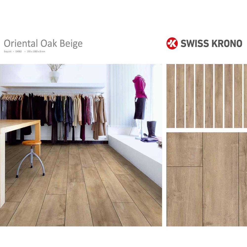 Laminátová podlaha s hrúbkou 8mm , oderuvzdornej triedy AC4/32 s V drážkou po celom obvode lamely a systémom spoja click, čo umožňuje jednoduchú inštaláciu aj domácim kutilom. Laminatová podlaha vhodná do domácnosti a vzhľadom na vysokokvalitnú laminátovú podlahu, môže byť namontovaná hocikde. Laminátová podlaha sa často používa v komerčných priestoroch, v rátane hotelov, reštaurácii, kanceláriách a obchodoch.