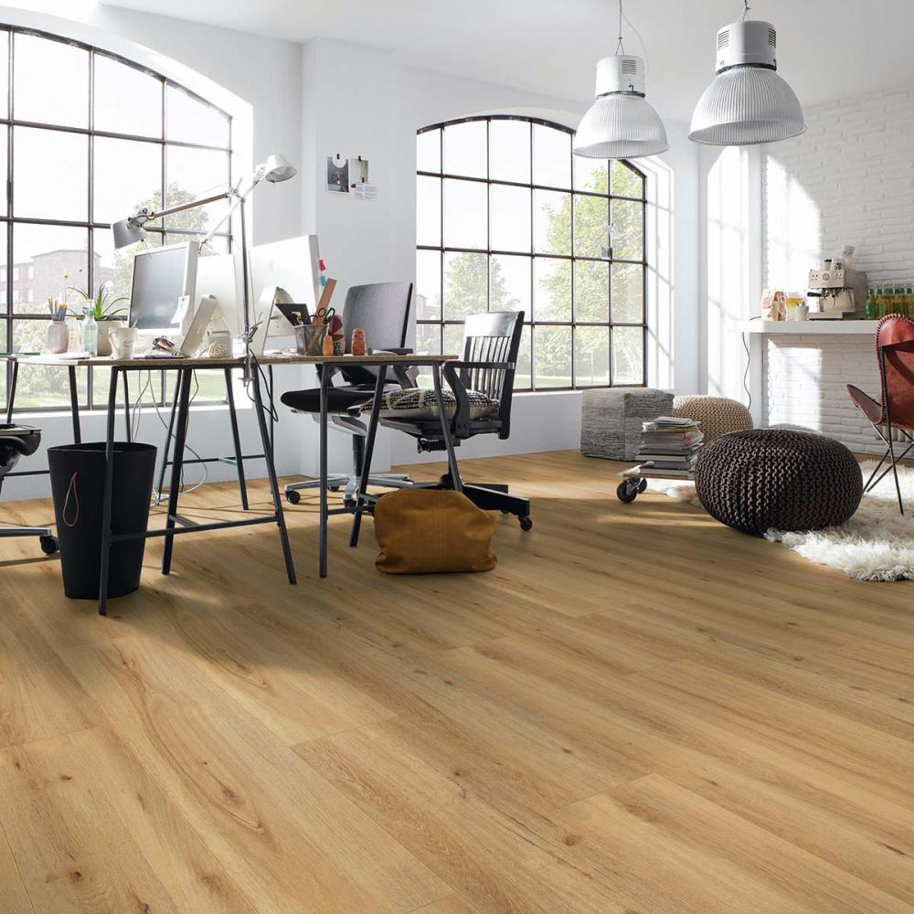 Laminátová podlaha s hrúbkou 8mm , oderuvzdornej triedy AC4/32 s V drážkou po celom obvode lamely a systémom spoja click, čo umožňuje jednoduchú inštaláciu aj domácim kutilom. Laminatová podlaha vhodná do domácnosti a vzhľadom na vysokokvalitnú laminátovú podlahu, môže byť namontovaná hocikde. Laminátová podlaha sa často používa v komerčných priestoroch, v rátane hotelov, reštaurácii, kanceláriách a obchodoch.