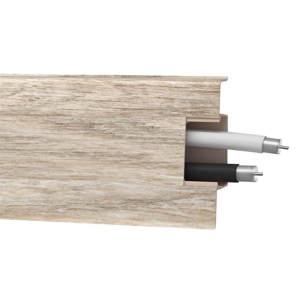 Soklová lišta k stene pre inštaláciu káblov, dokonale priliehajúca k stenám a podlahe vďaka zvláštnym gumičkám na hornom a dolnom okraji, lišta vyrovnáva všetky nerovnosti stien a podlahy. Rýchla a jednoduchá montáž bez nutnosti využívať príchytky. Po pripevnení umožňuje vedenie niekoľkých káblov bez nutnosti demontáže.