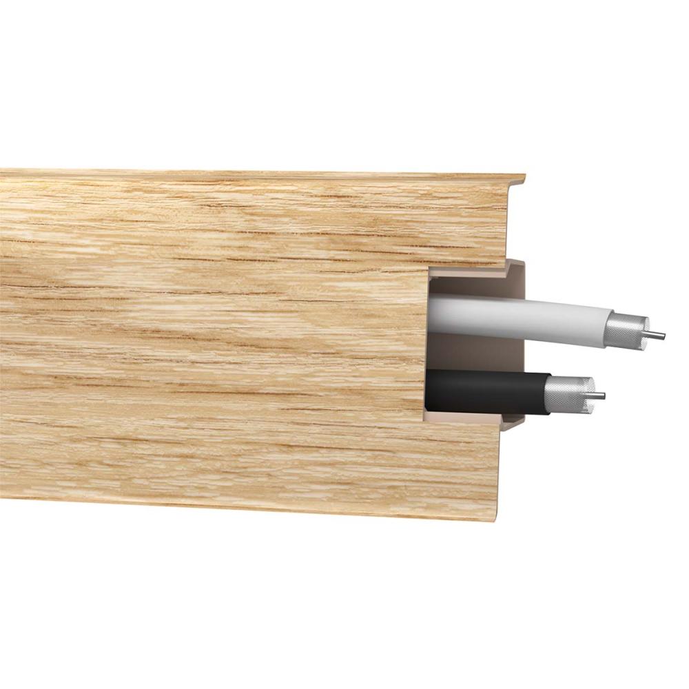 Soklová lišta k stene pre inštaláciu káblov, dokonale priliehajúca k stenám a podlahe vďaka zvláštnym gumičkám na hornom a dolnom okraji, lišta vyrovnáva všetky nerovnosti stien a podlahy. Rýchla a jednoduchá montáž bez nutnosti využívať príchytky. Po pripevnení umožňuje vedenie niekoľkých káblov bez nutnosti demontáže.