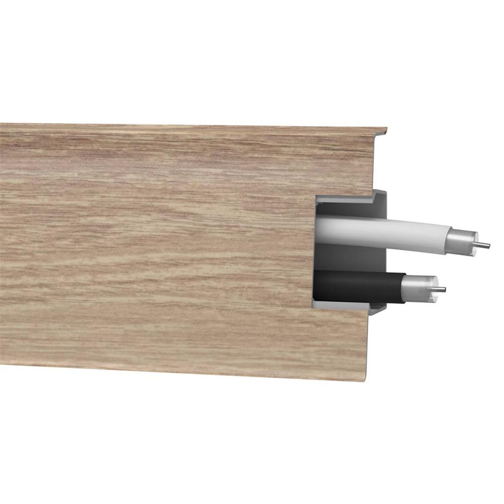 Soklová lišta k stene pre inštaláciu káblov, dokonale priliehajúca k stenám a podlahe vďaka zvláštnym gumičkám na hornom a dolnom okraji, lišta vyrovnáva všetky nerovnosti stien a podlahy. Rýchla a jednoduchá montáž bez nutnosti využívať príchytky. Po pripevnení umožňuje vedenie niekoľkých káblov bez nutnosti demontáže.
