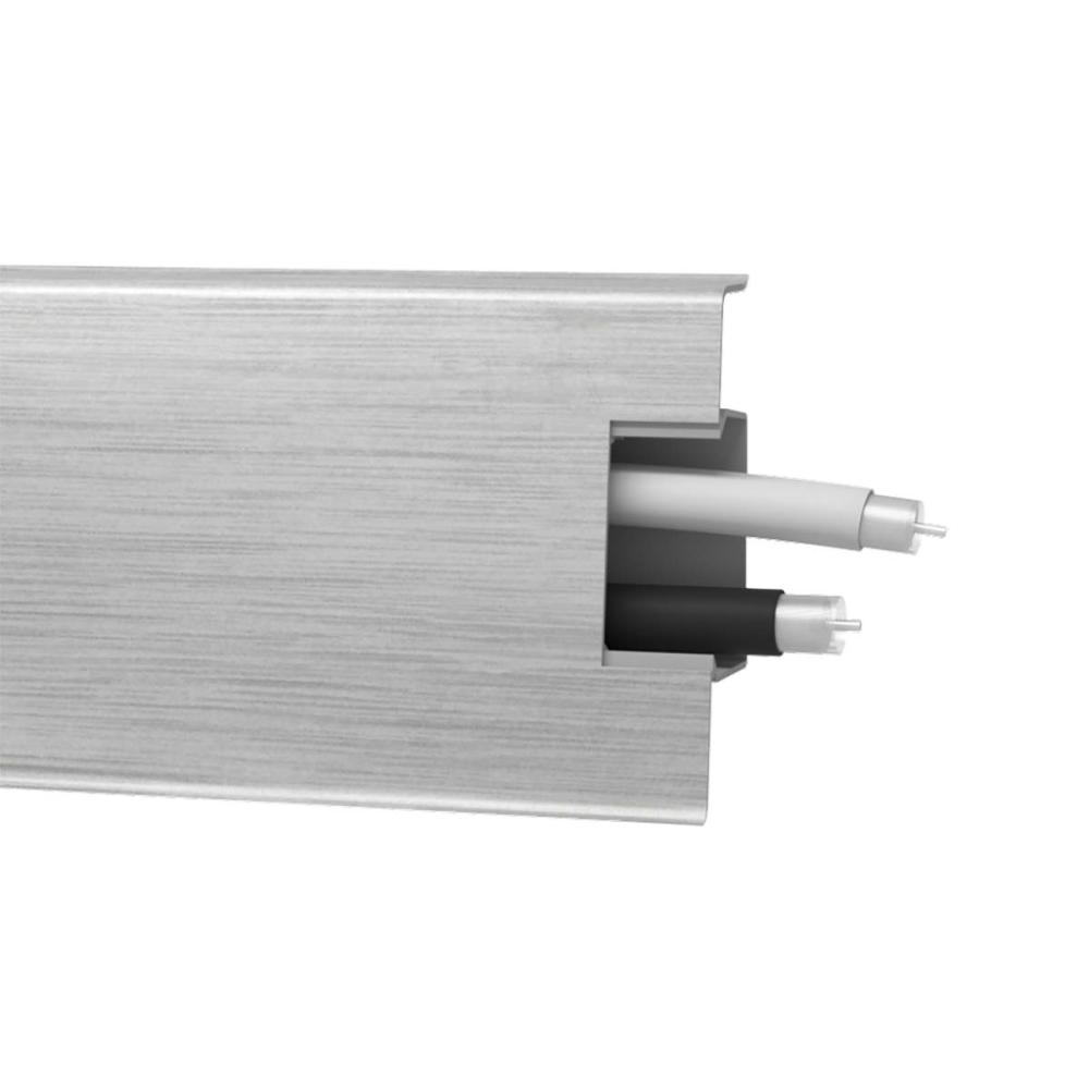Soklová lišta k stene pre inštaláciu káblov, dokonale priliehajúca k stenám a podlahe vďaka zvláštnym gumičkám na hornom a dolnom okraji, lišta vyrovnáva všetky nerovnosti stien a podlahy. Rýchla a jednoduchá montáž bez nutnosti využívať príchytky. Po pripevnení umožňuje vedenie niekoľkých káblov bez nutnosti demontáže.