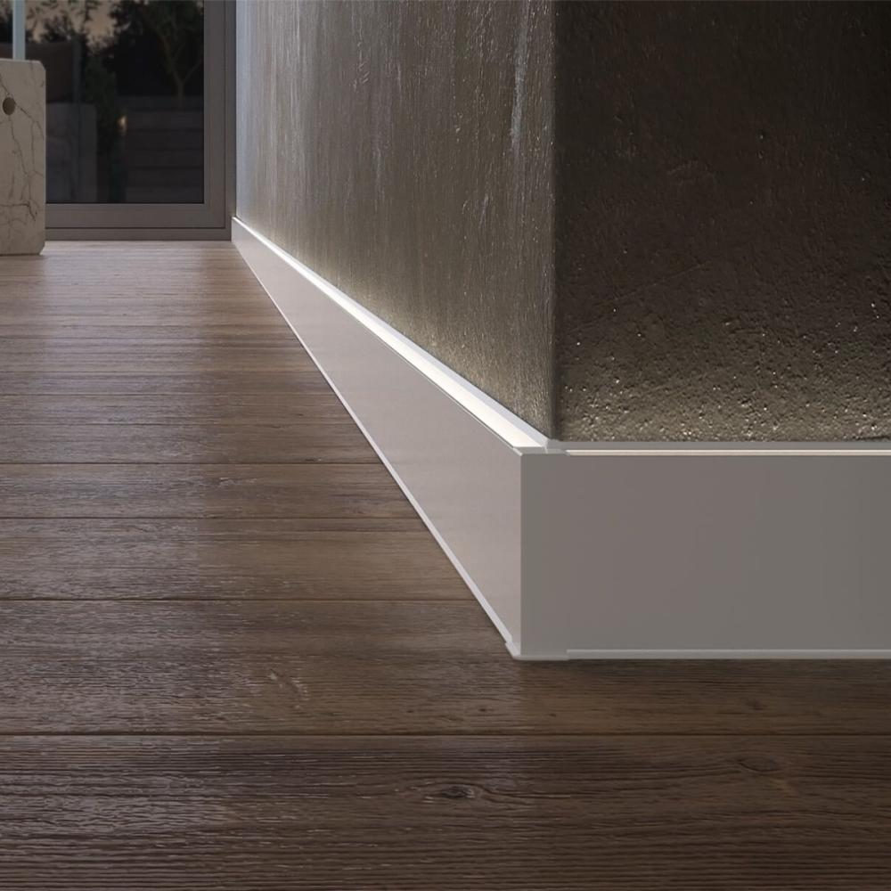 Systém je vhodný pre všetky typy podláh a je kompatibilný s LED pásikmi, ktoré umožňujú vytvoriť homogénne lineárne osvetlenie bez viditeľných svetelných bodiek. V každom dekore sú dostupné dva svetelné varianty – s umiestnením LED pásika hore alebo dole. K dispozícii je príslušenstvo v zhodných dekoroch.