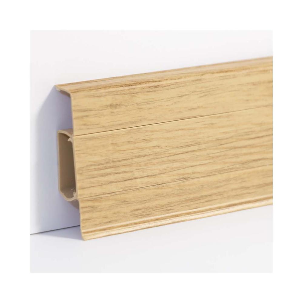 Plastová soklová lišta EFFECTA poteší všetkých priaznivcov čistých a moderných línií . Vyberateľný stred lišty umožní jednoduchú montáž a poslúži ako priestor na vedenie káblov . Dekory sú prispôsobené aktuálnym trendovým farbám podlahových materiálov a ku každému dekoru lišty sú k dispozícii doplnky / rohy , spojky , ukončenia / v identických farbách.