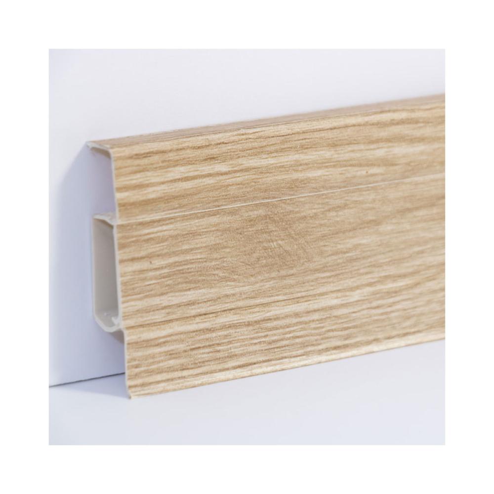 Plastová soklová lišta EFFECTA poteší všetkých priaznivcov čistých a moderných línií . Vyberateľný stred lišty umožní jednoduchú montáž a poslúži ako priestor na vedenie káblov . Dekory sú prispôsobené aktuálnym trendovým farbám podlahových materiálov a ku každému dekoru lišty sú k dispozícii doplnky / rohy , spojky , ukončenia / v identických farbách.