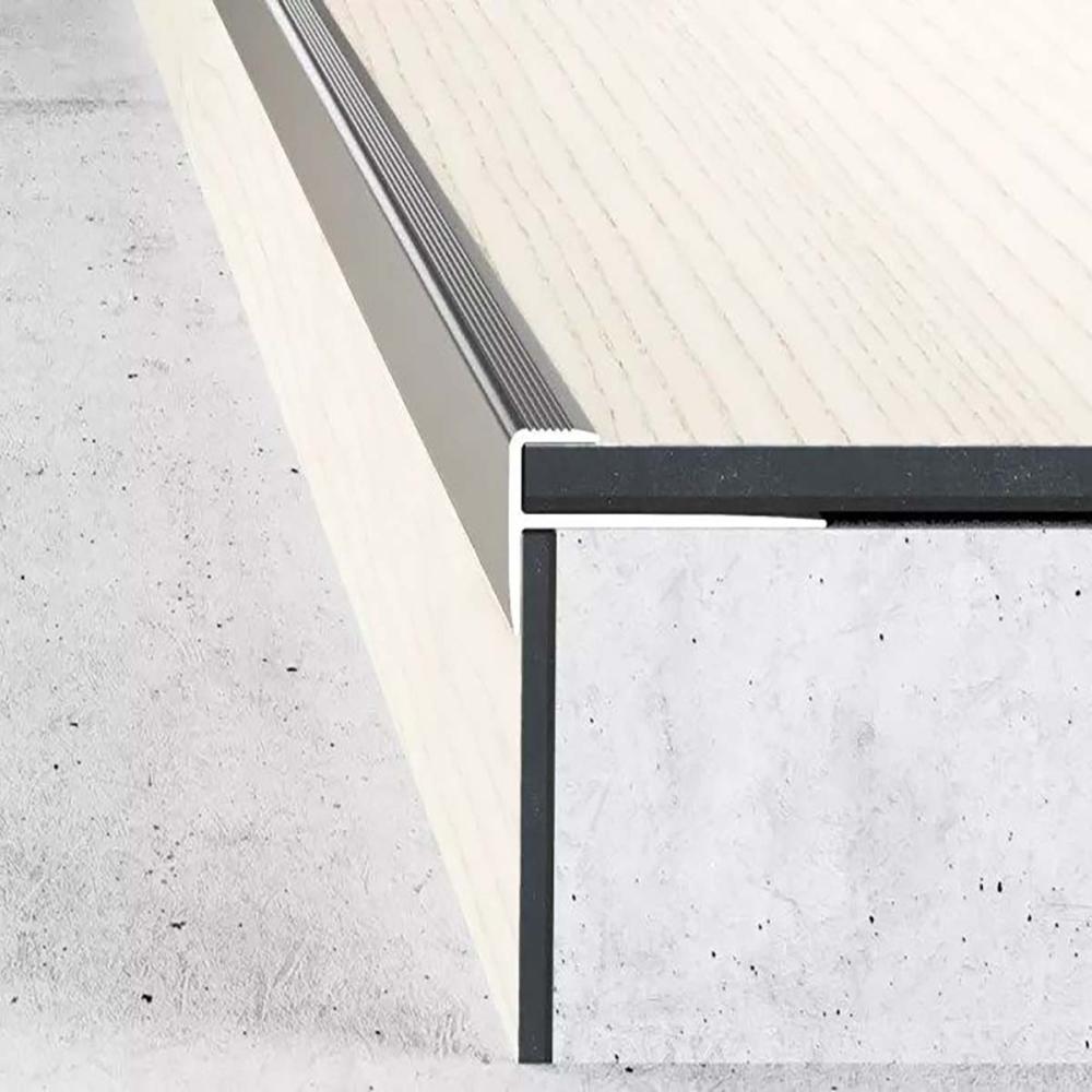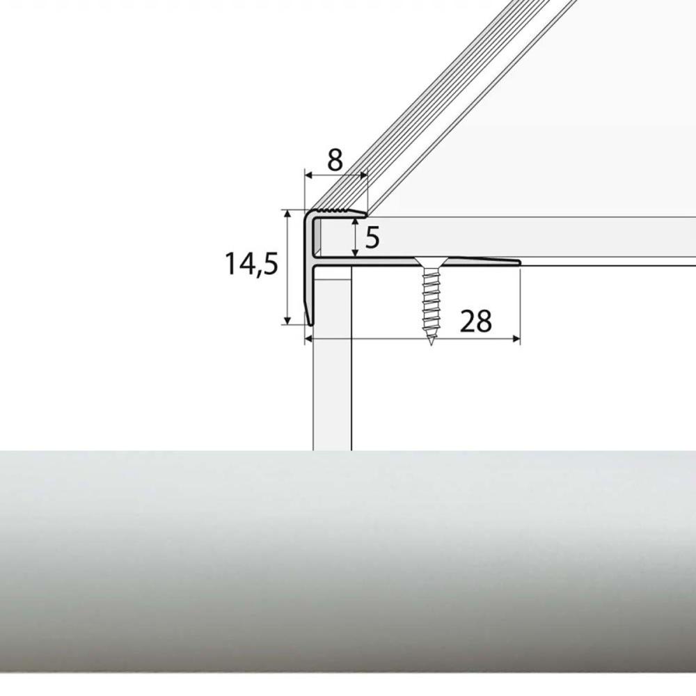 Hliníková schodová lišta ukončovacia skrutkovacia na vinylovú a kompozitnú podlahu hrúbky 5 mm.